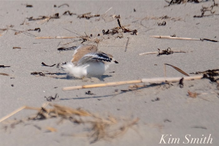 Today he was chilled and, within the roped off sanctuary, he tried several times to nestle under Papa. It looked super silly because Little Chick is nearly as big as Papa Plover. Papa rebuffed him and Little Chick found a clump of vegetation to warm under.