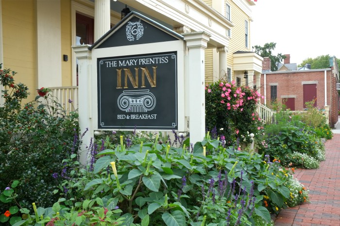 Even on a cloudy October day our front dooryard garden at the Mary Prentiss Inn is abuzz with blossoms and pollinators. The Monarch nectaring at the Tithonia was the first to greet me while checking on the garden.