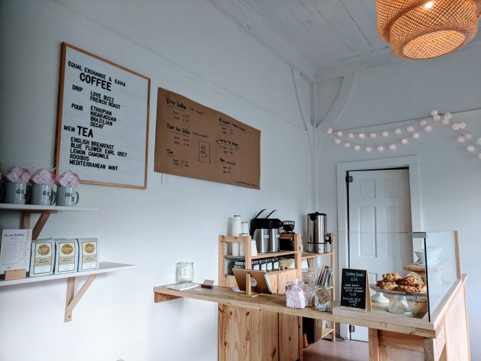 Step through the cheery pink door of Blume Coffee (“Flour Shop”) aside Mayflour Cakes & Confections at Whistlestop mall in Rockport Friday through Sunday for specialty coffees, teas, and hot chocolate (with to die for marshmallows), and not to miss Mayflour Confections daily bake treats.