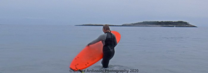 On Thursday the waves were awesome and then flat.  A surfer trying to find the perfect wave.