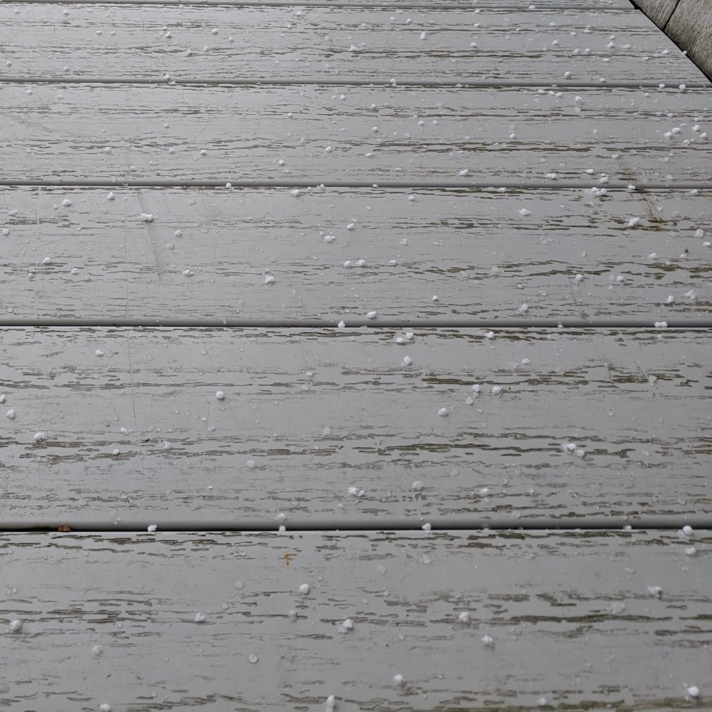 Nov. 17, 2022 midday – pretty cotton cloud heaps, sunny blue skies, and hail