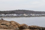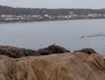 Cape Ann Marina guests can see whales from their rooms! Back home from work and spotted three whales immediately which means that some of the six right whales have been feeding more than ten hours HERE. It’s thrilling! I even saw one head to Salt Island and back. They check in and circle together. Two are lingering off Long Beach on the Gloucester side. When two and three are gliding along, stepped back one by one nearly together in a line, and moving fast, the legendary sea serpent stories did come to mind.