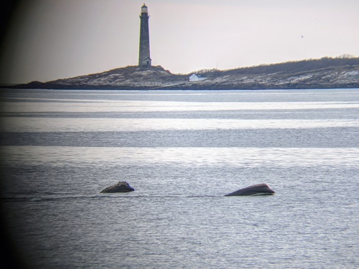 Spring time in Gloucester! Right whales visible from the shore May 5 and May 6, 2022. Not as close as 2018, but we could still hear the blows!