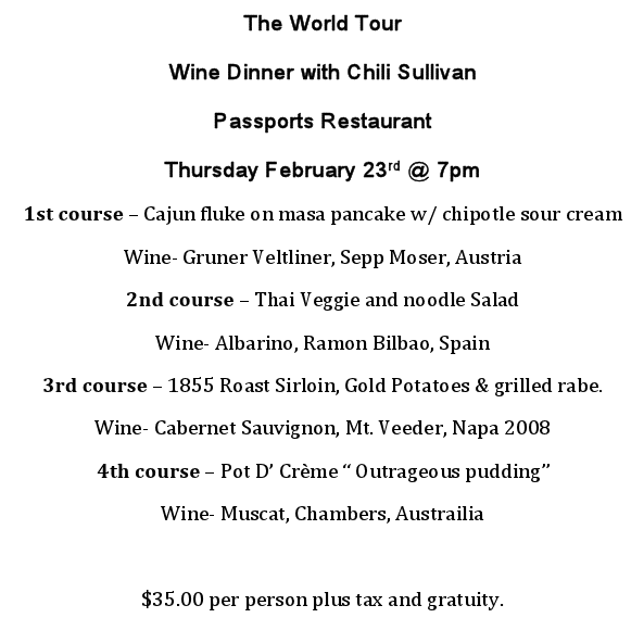 (Will be on the wine list – bottle: $30.00, glass: $8.00)