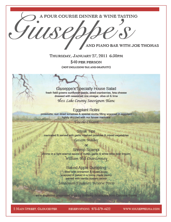 What’s on the set list and the tasting menu for this great pairing? Mark your calendars for the GHS Docksiders Wine Tasting booster at The Gloucester House on Saturday, March 17, at 6:30PM.