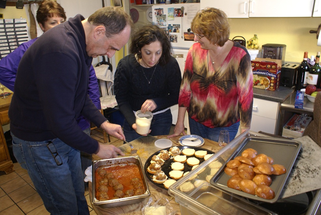 The Blue Shutters is having its final Food & Wine Tasting of the off-season on Saturday May 7, and there are still a few spots open. These Food & Wine Tastings are our most anticipated off-season events…and why not? You get to try some great wine paired with amazing dishes in a fun and friendly atmosphere overlooking Good Harbor Beach — and it’s our treat for those who spend a night or two at the Blue Shutters that weekend. And if that’s not enough of an incentive, consider this: we’re using our May 7 event to celebrate Cinco de Mayo, featuring wines and food items fromChile, Argentina and other countries south of the border. This all unfolds in the Main Room of the Blue Shutters, where you can compare notes with other wine and food lovers before retiring to one of our uniquely decorated rooms overlooking Good Harbor Beach. Once again, our Traveling Vineyard wine expert Kathy Hill and Langham Hotel chef Mark Sapienza are putting together the tasting menu for this afternoon. We’ll know more about their plans in a few weeks but to give you and idea of what’s in store, check out the items from our March tasting: Smoked Salmon Crostini; Chicken Rillettes with Apple Ice Wine and Toasted Baguettes; Fennel Salami, Speck and Duck Proscuitto with Fig and Cherry Moustarda Fruits; Meatball Parmesan Sliders; Manjari Soft Chocolate with Burgundy Cherries…all paired with yummy red and white wines (in the photo here you see Mark, his wife Donna and innkeeper Patty preparing those meatball sliders). No matter what Mark and Kathy serve up, this is definitely not your average Saturday afternoon snack. Call or email us today and reserve a room for this weekend — one night or two — and get in on this special event. We’re also offering a weekend discount — if you stay two nights that weekend, the second night is half-price! You won’t find a deal like this anywhere.