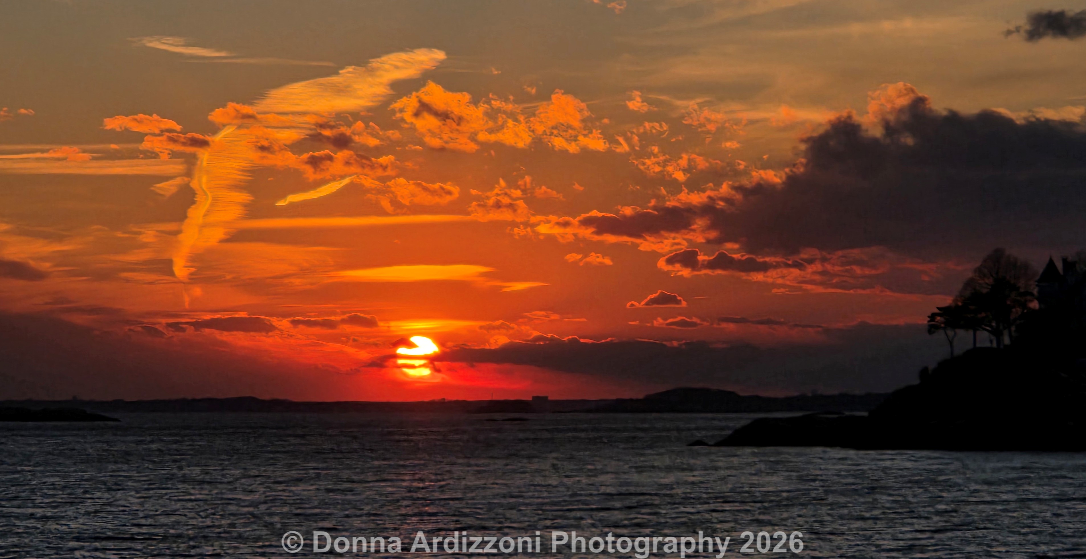The sunsets in Magnolia at this time of the year are amazing. Facing south west gives the best colors in the winter. Shore Road has many of the same people walking and taking photos at sunset. We are called the Sunset club.