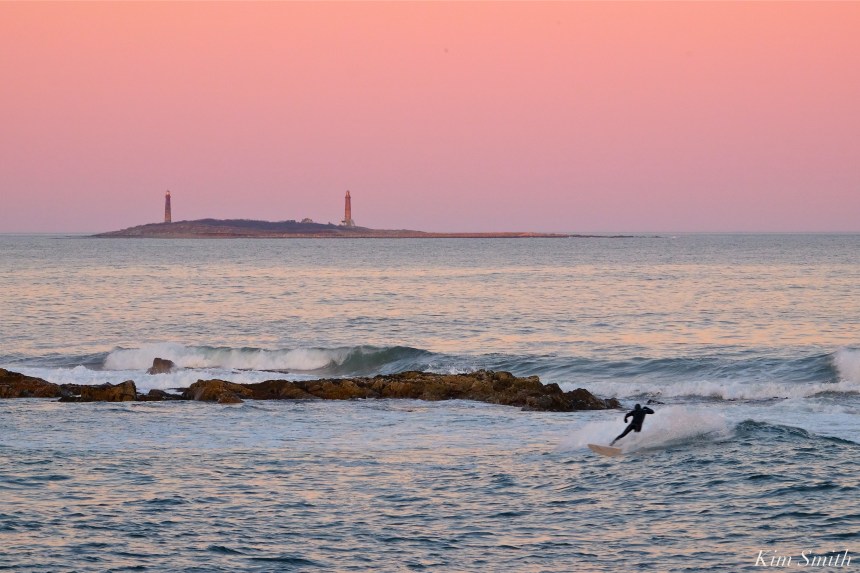 Went for a walk on the Atlantic Ave path wrapping around Andrews Point and what did I spy but two surfers in wet suits standing on the granite looking at the waves.