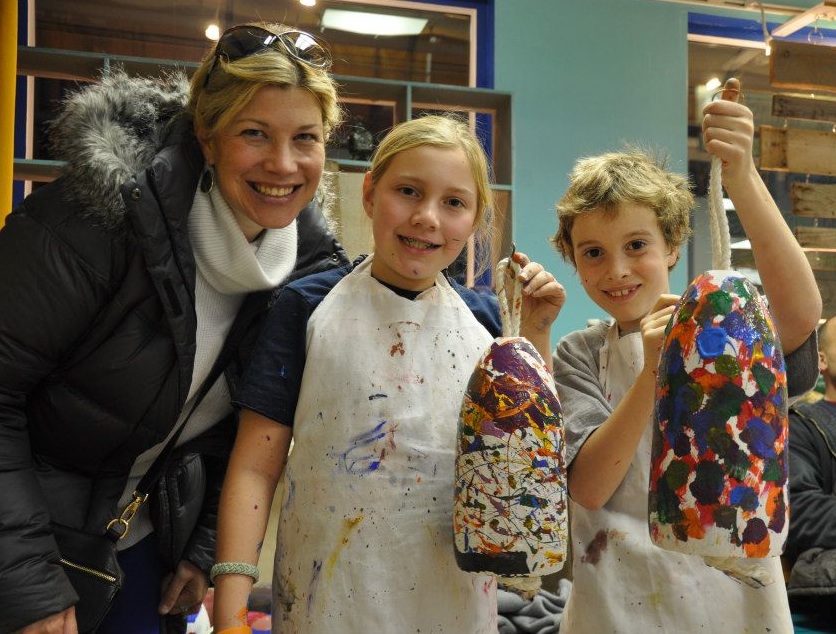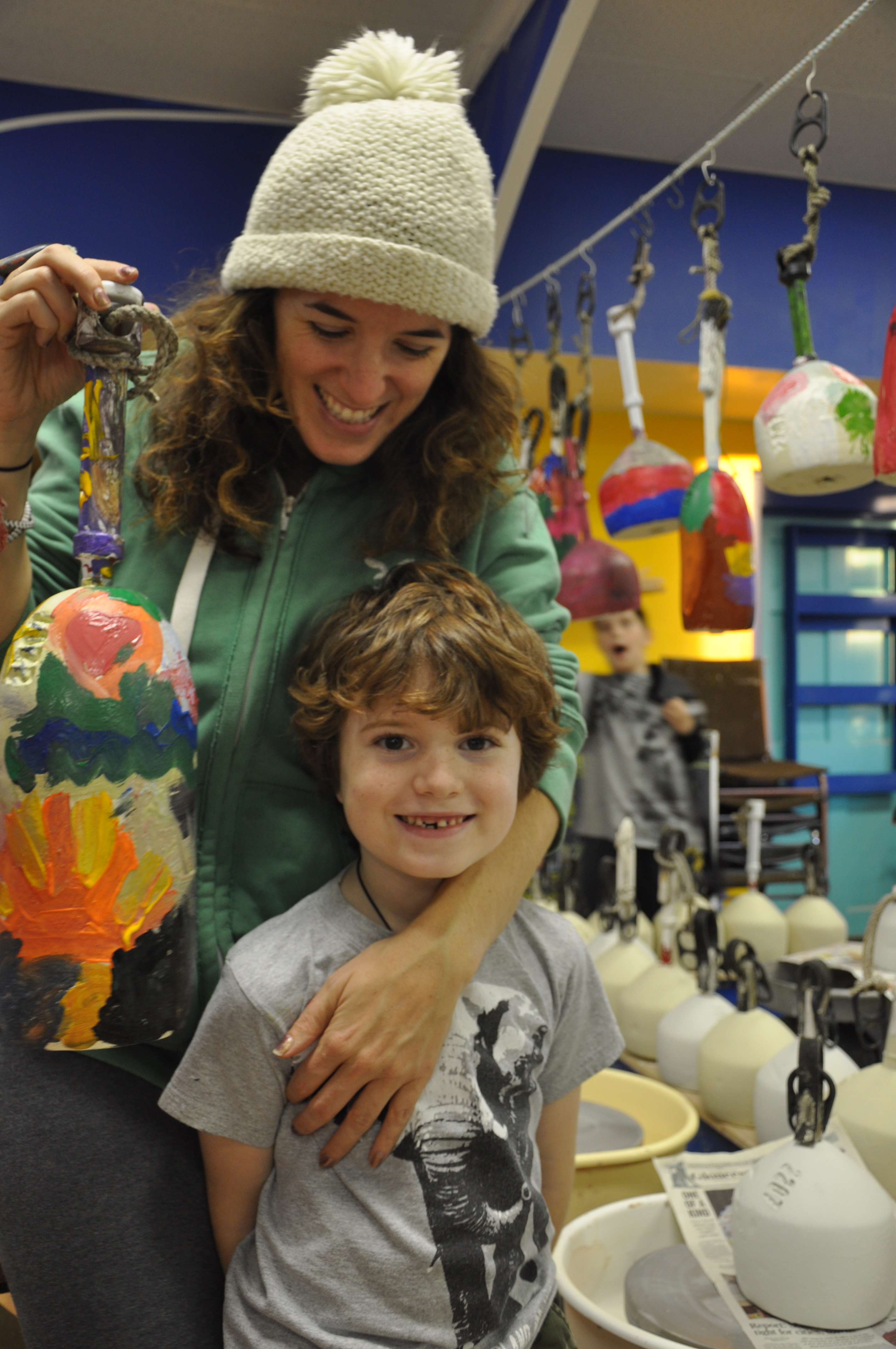 One of the things that makes our tree unique is that we have children paint donated buoys the week before the tree lighting ceremony. Last year we had more than 440 buoys painted by children – it’s a really big deal for them. The buoys are then used as “ornaments” to decorate the tree. When the tree comes down in January, we keep the buoys and auction them off as a fundraiser for Cape Ann Art Haven where they can go as high as $450 each. We also have local artists create specialty buoys and those have gone as high as $750 each.”