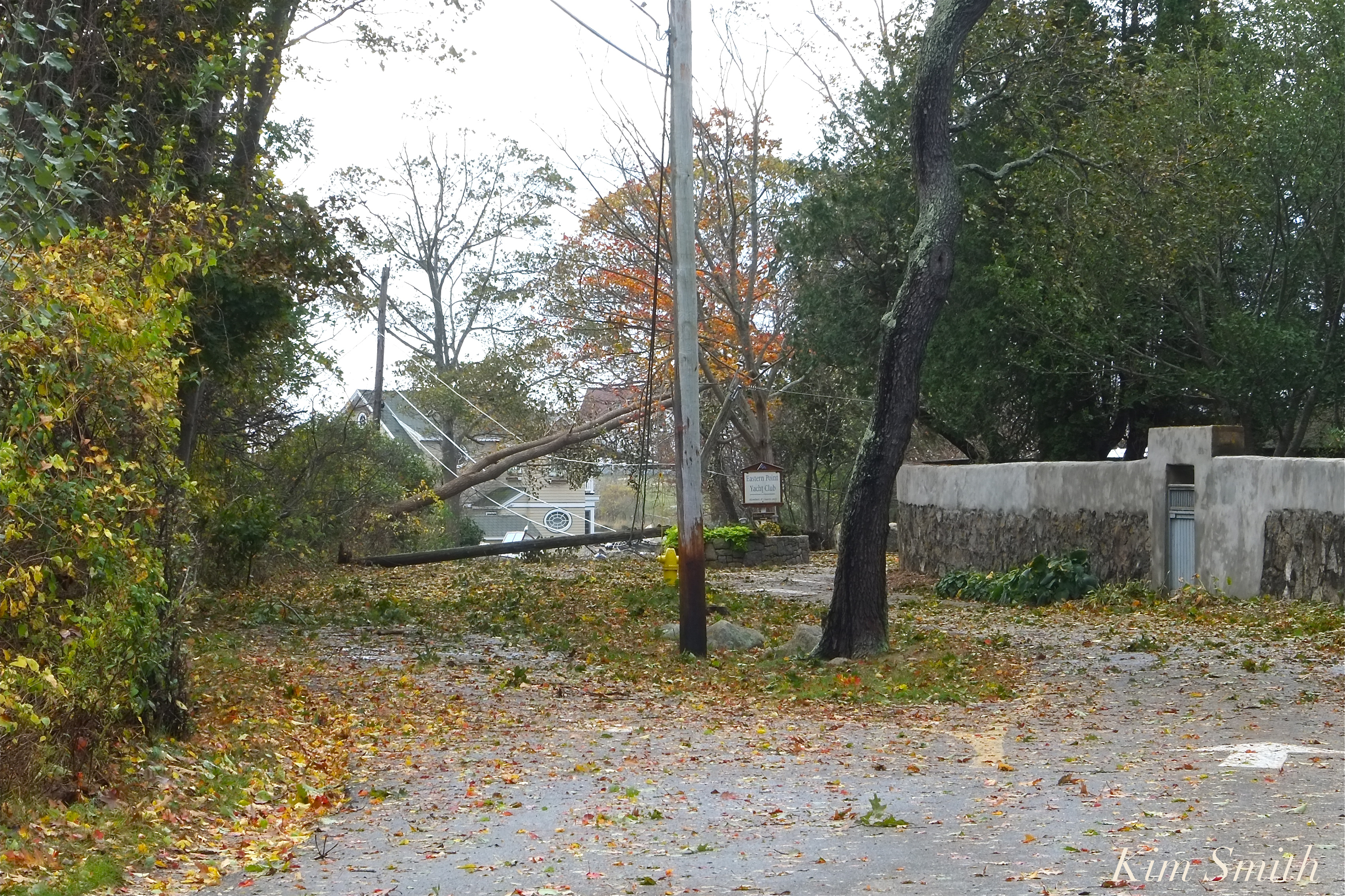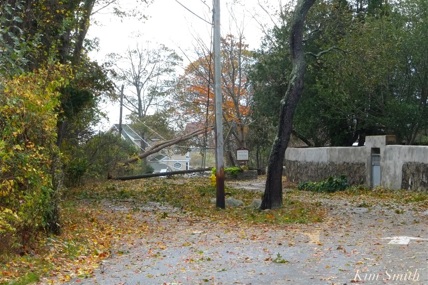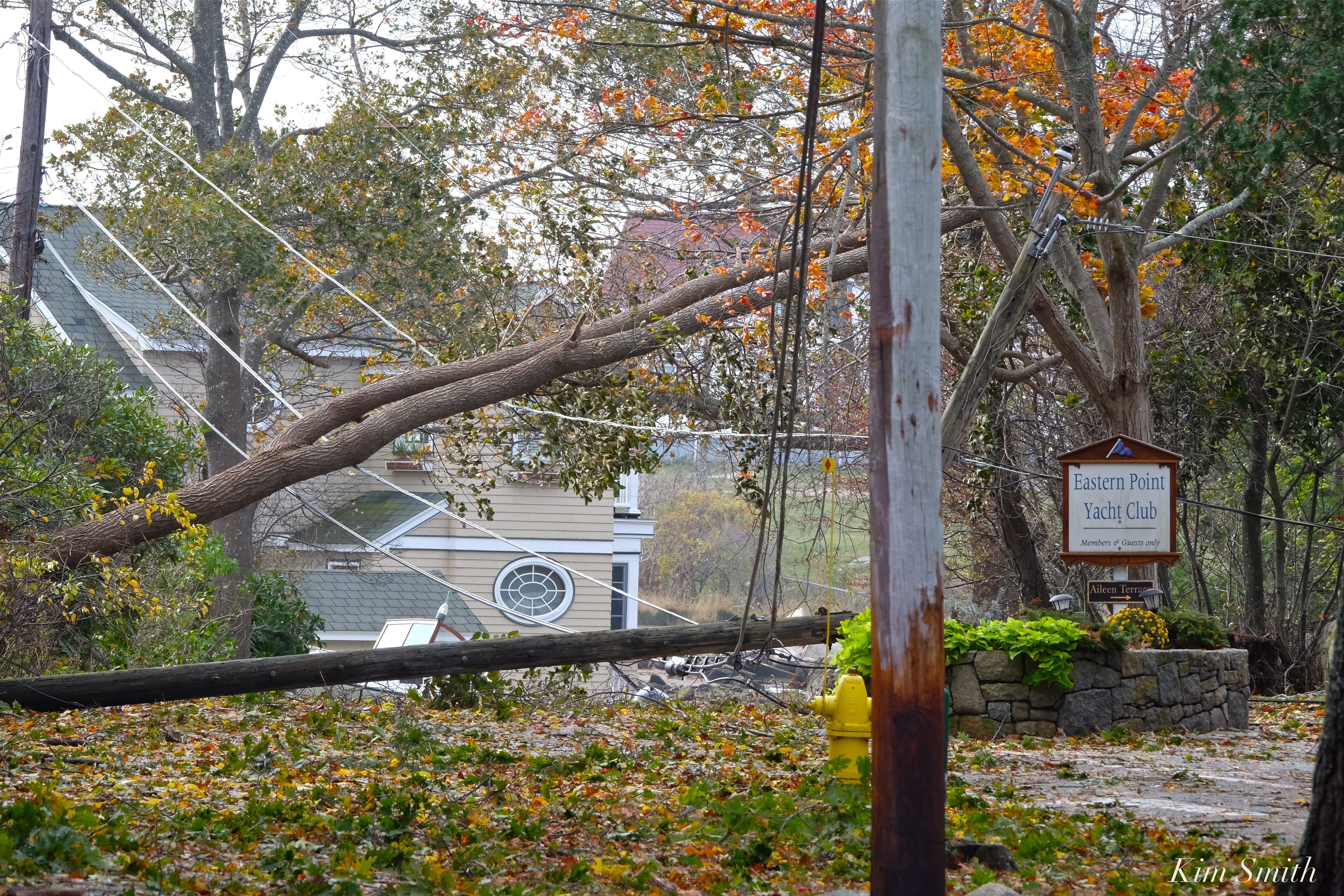 Downed power poles, live wires, and more than one tree blocking the road have created an unsafe situation at the Eastern Point Lighthouse, Mass Audubon sanctuary, and Yacht Club. All are closed until further notice. A police detail has been assigned. Eastern Point Boulevard