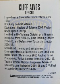 verso- meet Officer Alves_Gloucester MA_police baseball cards_20190411_© cryan (2) Spread The GMG Love By Sharing With These Buttons:Tweet Click to email a link to a friend (Opens in new window) Email Click to print (Opens in new window) Print Click to share on WhatsApp (Opens in new window) WhatsApp Pocket Click to share on Reddit (Opens in new window) Reddit Like Loading... Published by Catherine posted content / cell phone photos mine, unless otherwise credited (thumbnail portrait of Catherine at MFA, Boston © David Cox photo) https://www.cryanaid.com/ View all posts by Catherine